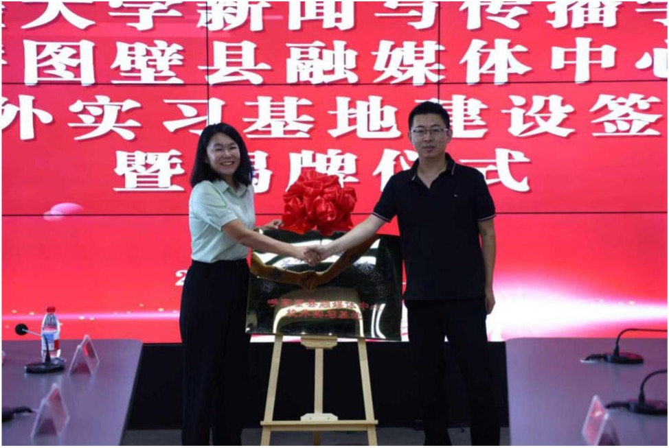 8月12日上午,新闻与传播学院和呼图壁县融媒体中心校外实习基地建设签约仪式暨座谈交流会在呼图壁县融媒体中心举行。新闻与传播学院党委委员、副院长杜松平,呼图壁县委宣传部副部长田晓梅,呼图壁县融媒体中心党支部书记、主任霍卫东,呼图壁县融媒体中心总编辑马慧,新闻与传播学院新闻系系主任武运波、呼图壁县融媒体中心副主任刘瑞雪以及各科室主任及业务骨干,出席签约仪式。